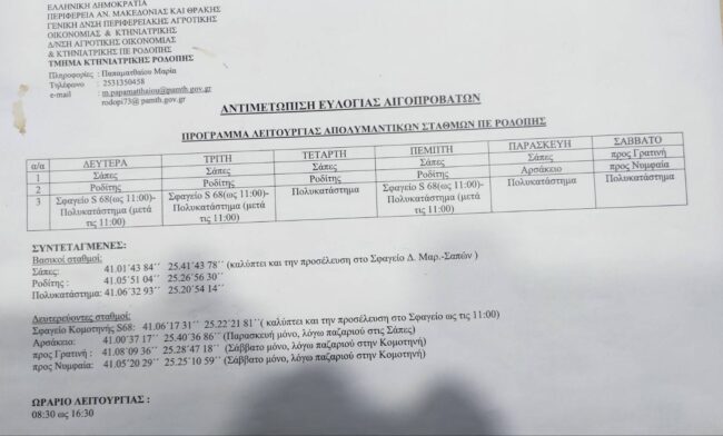 Παρακαλούνται οι κτηνοτρόφοι να σταματούν να απολυμένουν τα οχηματά τους κατά τη διέλευσή τους απο τα συγκεκριμένα σημεία.
