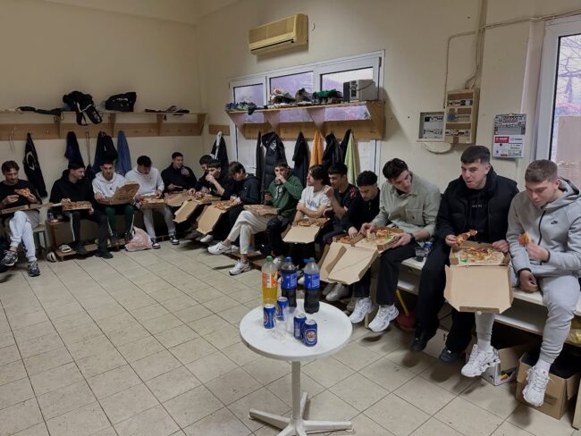 Στην συνέχεια ακολούθησε η κοπή της βασιλόπιτας και πίτσα party στον χώρο των αποδυτηρίων του γηπέδου μας.