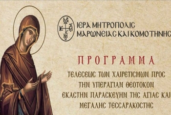 Πρόγραμμα Τελέσεως των Χαιρετισμών της Θεοτόκου στην Ι.Μ. Μαρωνείας και Κομοτηνής