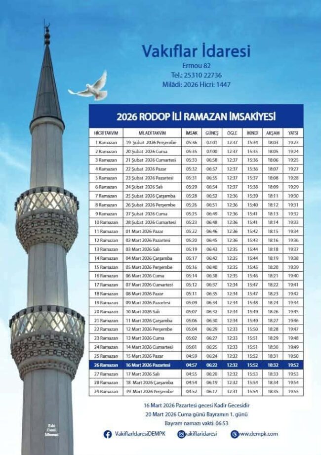 Η  Μουφτεία Κομοτηνής δημοσιεύει  το πρόγραμμα “Ιμσαακιγιέ” για την έναρξη και τη λύση της φετινής νηστείας στην Π.Ε. Ροδόπης: