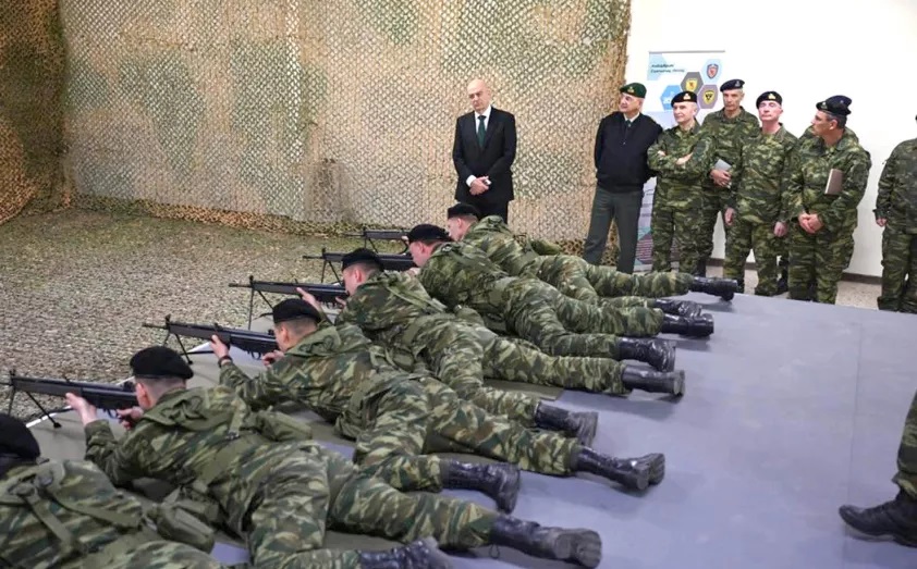 Η αύξηση των χρημάτων που δίνονται στους οπλίτες θητείας, από 8 ευρώ τον μήνα πηγαίνει στα 100 ευρώ, ώστε «η οικογένεια να μην χρειάζεται κι αυτή να συνεισφέρει τουλάχιστον για τους καφέδες του νέου στρατιώτη», σύμφωνα με τον κ. Δένδια. Πέστα Δένδια, η ανάγκη του στρατιώτη είναι ο καφές. Και τα τσιγάρα; Βάλε υπουργέ άλλα 200 ευρώ, είναι λεβέντης και θεριακλής ο Έλλην στρατιώτης, να μην πληρώνει η οικογένεια του για τα τσιγάρα του. Στην φωτογραφία στημένη πόζα για τον υπουργό. Ευτυχώς, τα G3 δεν έχουν γεμιστήρες…