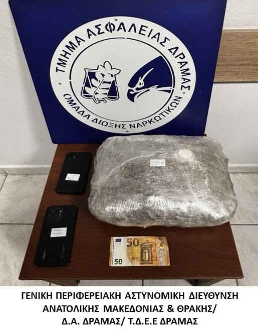 Σε δεύτερη περίπτωση, την 9-2-2026 το βράδυ στη Δράμα, αστυνομικοί της Ομάδας Δίωξης Ναρκωτικών με τη συνδρομή αστυνομικών της Ο.Π.Κ.Ε. του Τμήματος Δίωξης και Εξιχνίασης Εγκλημάτων Δράμας και της Ομάδας Δίκυκλης Αστυνόμευσης του Αστυνομικού Τμήματος Δράμας, έπειτα από κατάλληλη αξιοποίηση πληροφοριών σχετικά με διακίνηση ναρκωτικών ουσιών, συνέλαβαν έναν αλλοδαπό και μία ημεδαπή, διότι τους εντόπισαν να επιβαίνουν σε Ι.Χ.Ε. αυτοκίνητο και σε έρευνα που πραγματοποιήθηκε με τη συνδρομή αστυνομικού σκύλου “VERA” στο εσωτερικό του οχήματος, βρέθηκε μία νάιλον συσκευασία με ακατέργαστη κάνναβη, βάρους -2- κιλών και -130- γραμμαρίων, η οποία και κατασχέθηκε.