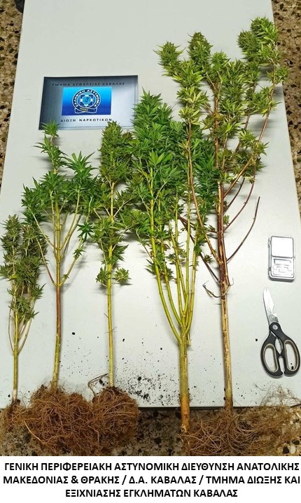 Αναλυτικότερα, στην πρώτη περίπτωση, την 23-9-2025 το απόγευμα σε δασική περιοχή της Καβάλας, αστυνομικοί της Ομάδας Δίωξης Ναρκωτικών του Τμήματος Δίωξης και Εξιχνίασης Εγκλημάτων Καβάλας συνέλαβαν έπειτα από κατάλληλη αξιοποίηση πληροφοριών έναν ημεδαπό, διότι τον εντόπισαν να καλλιεργεί -5- φυτά κάνναβης ύψους -1,2- μέτρων τα οποία εκριζώθηκαν και κατασχέθηκαν. Επιπλέον κατασχέθηκαν μία ηλεκτρονική ζυγαριά ακριβείας και ένα ψαλίδι που χρησιμοποιούσε ο συλληφθείς για την περιποίηση των φυτών.