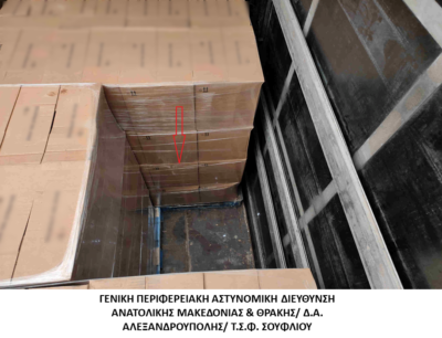 Αναλυτικότερα, στην πρώτη περίπτωση, το πρωί σε Επαρχιακή οδό του Έβρου, αστυνομικοί του Τμήματος Συνοριακής Φύλαξης Σουφλίου της Διεύθυνσης Αστυνομίας Αλεξανδρούπολης συνέλαβαν τον αλλοδαπό διακινητή, διότι κατά τον ενδελεχή έλεγχο που πραγματοποίησαν σε Ι.Χ.Φ. όχημα (ρυμουλκό μετά ρυμουλκούμενου)που οδηγούσε ,διαπίστωσαν ότι είχε αποκρύψει σε ειδικά διαμορφωμένη κρύπτη του ρυμουλκούμενου, οκτώ (8) μη νόμιμους μετανάστες, μεταφέροντάς τους με αυτό τον τρόπο παράνομα στο εσωτερικό της χώρας.