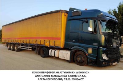 Αναλυτικότερα, στην πρώτη περίπτωση,χθες το πρωί σε Επαρχιακή οδό του Έβρου, αστυνομικοί του Τμήματος Συνοριακής Φύλαξης Σουφλίου συνέλαβαν έναν διακινητή, διότι τον εντόπισαν να οδηγεί Ι.Χ.Φ. όχημα (ρυμουλκό μετά ρυμουλκούμενου) και να μεταφέρει παράνομα στο εσωτερικό της χώρας επτά (7) μη νόμιμους μετανάστες τους οποίους είχε αποκρύψει εντός τουρυμουλκούμενου, μεταξύ των εμπορευμάτων.