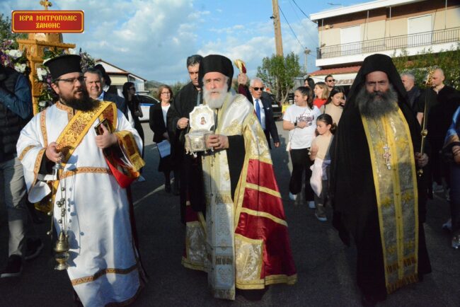 Με τιμές και θρησκευτική ευλάβεια πραγματοποιήθηκε η υποδοχή των Ιερών Λειψάνων του Αγίου Μεγαλομάρτυρος Γεωργίου του Τροπαιοφόρου και ο Πανηγυρικός Αρχιερατικός Εσπερινός στον εορτάζοντα Ιερό Ναό του οικισμού της Λευκόπετρας, χοροστατούντος του Σεβασμιωτάτου Μητροπολίτου Ξάνθης κ.κ. Παντελεήμονος.