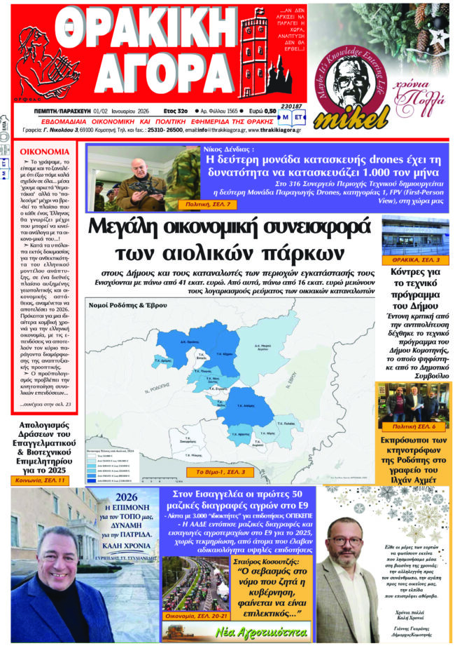 ΑΡΧΙΚΗΕΙΔΗΣΕΙΣΑΝΑΤΟΛΙΚΗ ΜΑΚΕΔΟΝΙΑ ΚΑΙ ΘΡΑΚΗΘΡΑΚΙΚΗ ΑΓΟΡΑ : 01/02-01-2026 ΘΡΑΚΙΚΗ ΑΓΟΡΑ3 Ιανουαρίου, 2026 12:45 μμ ΚΑΤΗΓΟΡΙΑ ΑΝΑΤΟΛΙΚΗ ΜΑΚΕΔΟΝΙΑ ΚΑΙ ΘΡΑΚΗΕΙΔΗΣΕΙΣΕΦΗΜΕΡΙΔΑ Μοιραστείτε τό