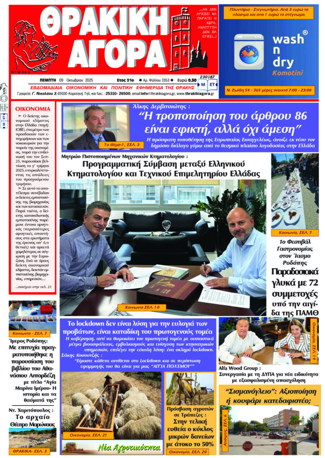 ΑΡΧΙΚΗΕΙΔΗΣΕΙΣΑΝΑΤΟΛΙΚΗ ΜΑΚΕΔΟΝΙΑ ΚΑΙ ΘΡΑΚΗΘΡΑΚΙΚΗ ΑΓΟΡΑ : 09-10-2025 ΘΡΑΚΙΚΗ ΑΓΟΡΑ10 Οκτωβρίου, 2025 3:15 μμ ΚΑΤΗΓΟΡΙΑ ΑΝΑΤΟΛΙΚΗ ΜΑΚΕΔΟΝΙΑ ΚΑΙ ΘΡΑΚΗΕΙΔΗΣΕΙΣΕΦΗΜΕΡΙΔΑ Μοιραστείτε τό