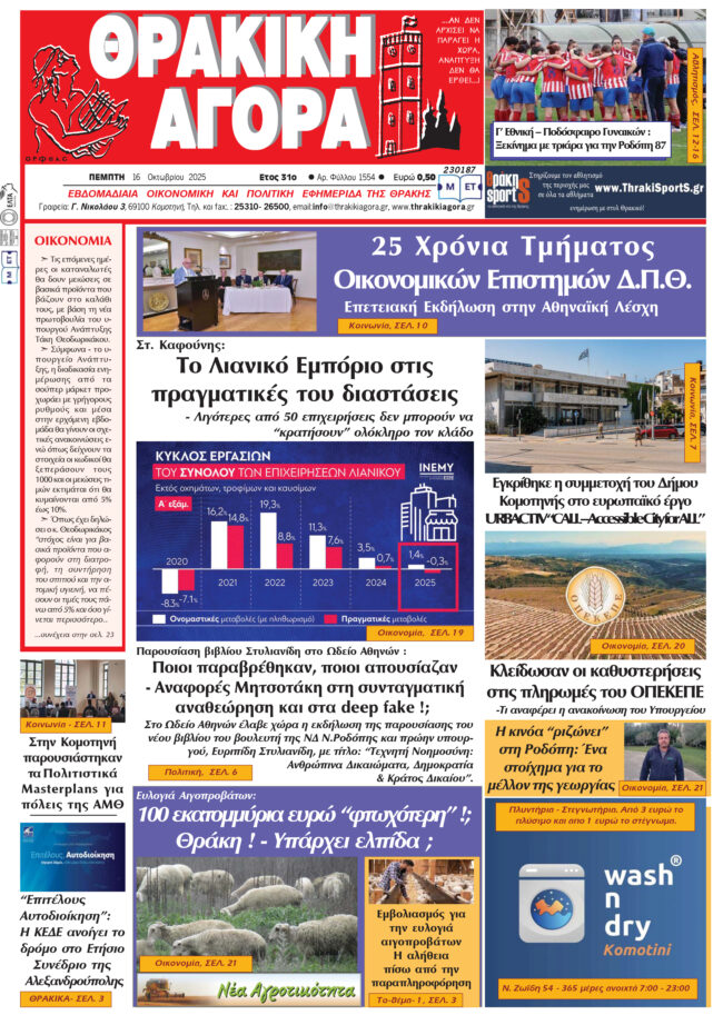 ΑΡΧΙΚΗΕΙΔΗΣΕΙΣΑΝΑΤΟΛΙΚΗ ΜΑΚΕΔΟΝΙΑ ΚΑΙ ΘΡΑΚΗΘΡΑΚΙΚΗ ΑΓΟΡΑ : 16-10-2025 ΘΡΑΚΙΚΗ ΑΓΟΡΑ16 Οκτωβρίου, 2025 3:15 μμ ΚΑΤΗΓΟΡΙΑ ΑΝΑΤΟΛΙΚΗ ΜΑΚΕΔΟΝΙΑ ΚΑΙ ΘΡΑΚΗΕΙΔΗΣΕΙΣΕΦΗΜΕΡΙΔΑ Μοιραστείτε τό