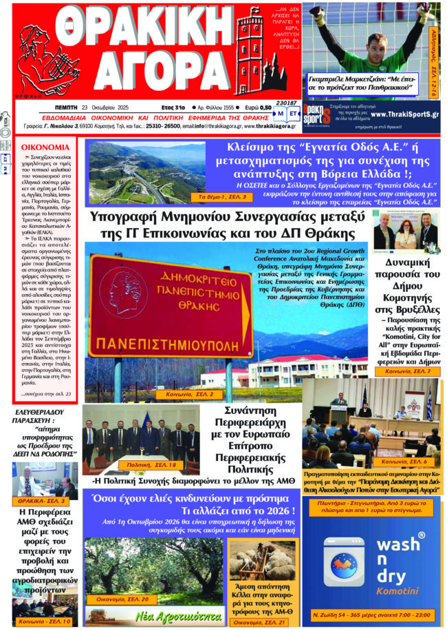 ΑΡΧΙΚΗΕΙΔΗΣΕΙΣΑΝΑΤΟΛΙΚΗ ΜΑΚΕΔΟΝΙΑ ΚΑΙ ΘΡΑΚΗΘΡΑΚΙΚΗ ΑΓΟΡΑ : 23-10-2025 ΘΡΑΚΙΚΗ ΑΓΟΡΑ23 Οκτωβρίου, 2025 3:15 μμ ΚΑΤΗΓΟΡΙΑ ΑΝΑΤΟΛΙΚΗ ΜΑΚΕΔΟΝΙΑ ΚΑΙ ΘΡΑΚΗΕΙΔΗΣΕΙΣΕΦΗΜΕΡΙΔΑ Μοιραστείτε τό
