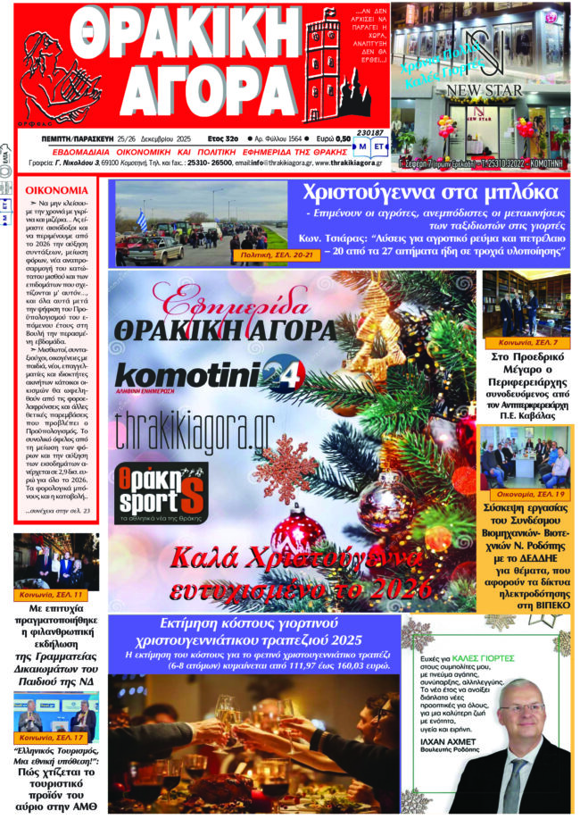 ΑΡΧΙΚΗΕΙΔΗΣΕΙΣΑΝΑΤΟΛΙΚΗ ΜΑΚΕΔΟΝΙΑ ΚΑΙ ΘΡΑΚΗΘΡΑΚΙΚΗ ΑΓΟΡΑ : 25/26-12-2025 ΘΡΑΚΙΚΗ ΑΓΟΡΑ25 Δεκεμβρίου, 2025 3:15 μμ ΚΑΤΗΓΟΡΙΑ ΑΝΑΤΟΛΙΚΗ ΜΑΚΕΔΟΝΙΑ ΚΑΙ ΘΡΑΚΗΕΙΔΗΣΕΙΣΕΦΗΜΕΡΙΔΑ Μοιραστείτε τό