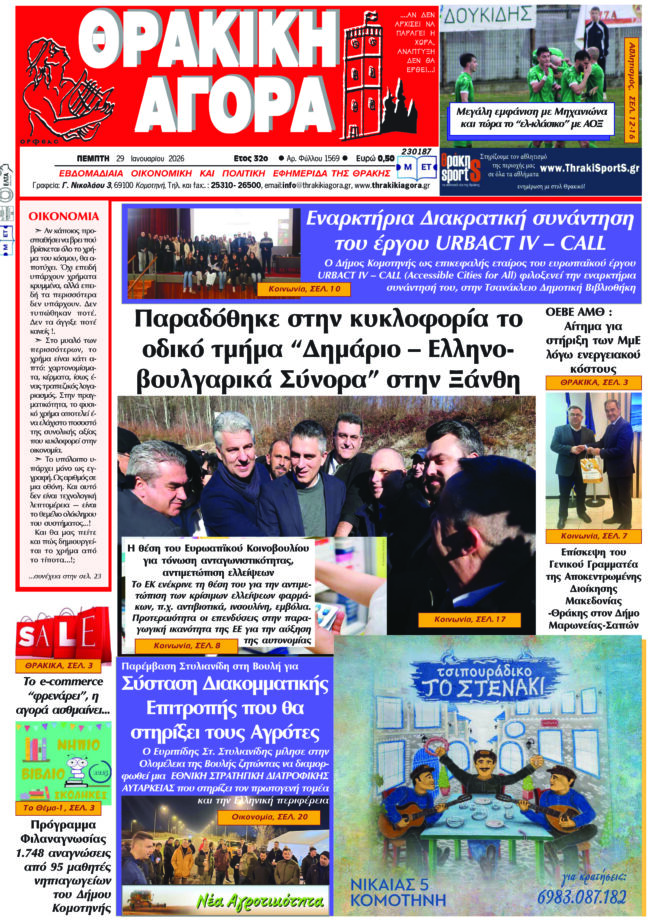 ΑΡΧΙΚΗΕΙΔΗΣΕΙΣΑΝΑΤΟΛΙΚΗ ΜΑΚΕΔΟΝΙΑ ΚΑΙ ΘΡΑΚΗΘΡΑΚΙΚΗ ΑΓΟΡΑ : 29-01-2026 ΘΡΑΚΙΚΗ ΑΓΟΡΑ29 Ιανουαρίου, 2026 3:15 μμ ΚΑΤΗΓΟΡΙΑ ΑΝΑΤΟΛΙΚΗ ΜΑΚΕΔΟΝΙΑ ΚΑΙ ΘΡΑΚΗΕΙΔΗΣΕΙΣΕΦΗΜΕΡΙΔΑ Μοιραστείτε τό