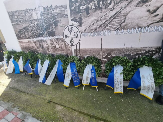 Ακολούθησε επιμνημόσυνη δέηση μπροστά από το μνημείο των θυμάτων των διωγμών του Θρακικού Ελληνισμού, το οποίο βρίσκεται στον αύλειο χώρο του ναού.