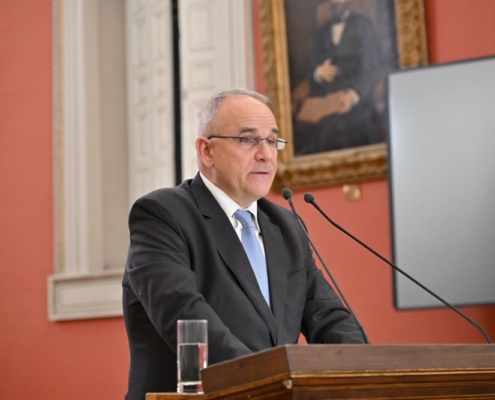 Ο κ. Κωνσταντίνος Βελέντζας αναφέρθηκε στις αξίες του ελληνικού πολιτισμού στις οποίες στηρίζεται η πολιτισμένη ανθρωπότητα και στον Λόρδο Βύρωνα ο οποίος ανέδειξε τον Φιλελληνισμό. Υπογράμμισε το έργο του κ. Berset για τη στήριξη των ανθρωπίνων δικαιωμάτων, της δημοκρατίας και του κράτους δικαίου, αναφερόμενος στο «Νέο Δημοκρατικό Σύμφωνο για την Ευρώπη», για την αντιμετώπιση της οπισθοδρόμησης της δημοκρατίας, της παραπληροφόρησης και για την ηθική ρύθμιση της Τεχνητής Νοημοσύνης, και στην ανάδειξη της προστασίας του περιβάλλοντος ως βασικό ανθρώπινο δικαίωμα.
