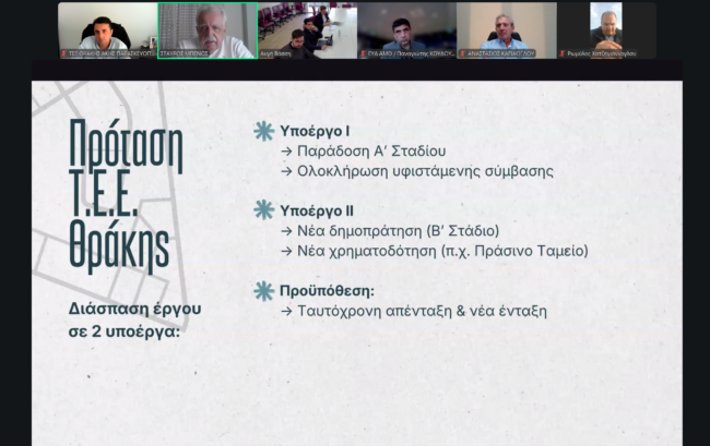 Η πρόταση θα εξεταστεί τεχνικά από το Υπουργείο Περιβάλλοντος και Ενέργειας, το Πράσινο Ταμείο, τη Διαχειριστική Αρχή της Περιφέρειας ΑΜΘ και το ΤΕΕ, ενώ συμφωνήθηκε νέα συνάντηση στο τέλος του μήνα με στόχο την προώθηση της υλοποίησης της λύσης.
