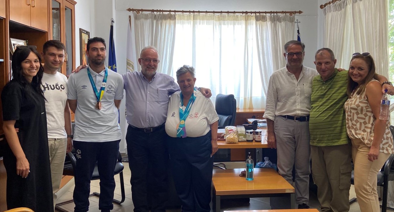 ΤΟΥΣ ΔΥΟ ΔΗΜΟΤΕΣ ΤΟΥ ΔΗΜΟΥ ΜΑΡΩΝΕΙΑΣ-ΣΑΠΩΝ ΠΟΥ ΔΙΑΚΡΙΘΗΚΑΝ ΣΕ ΑΓΩΝΕΣ ΤΩΝ SPECIAL OLYMPICS ΒΡΑΒΕΥΣΕ Ο ΔΗΜΑΡΧΟΣ κ. ΝΤΙΝΟΣ ΧΑΡΙΤΟΠΟΥΛΟΣ